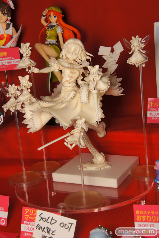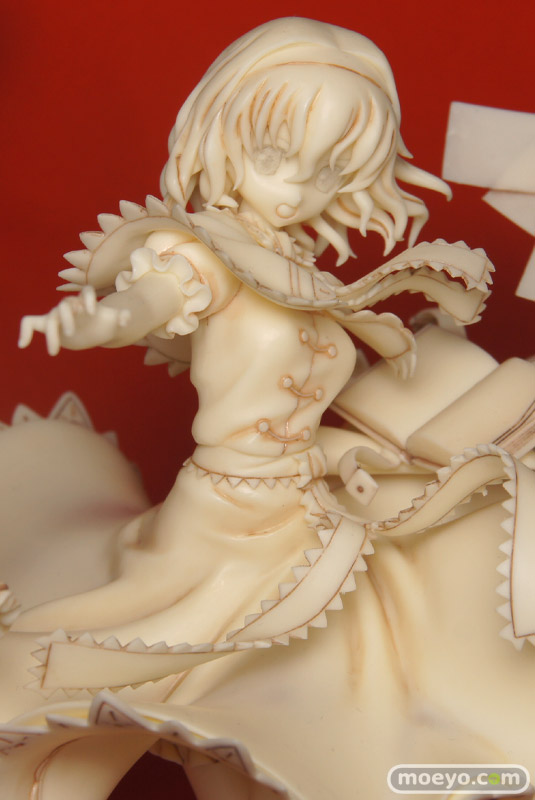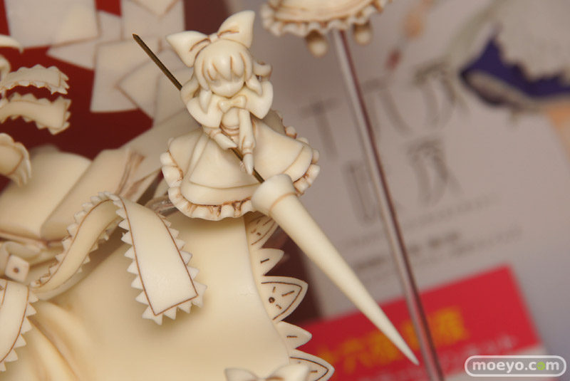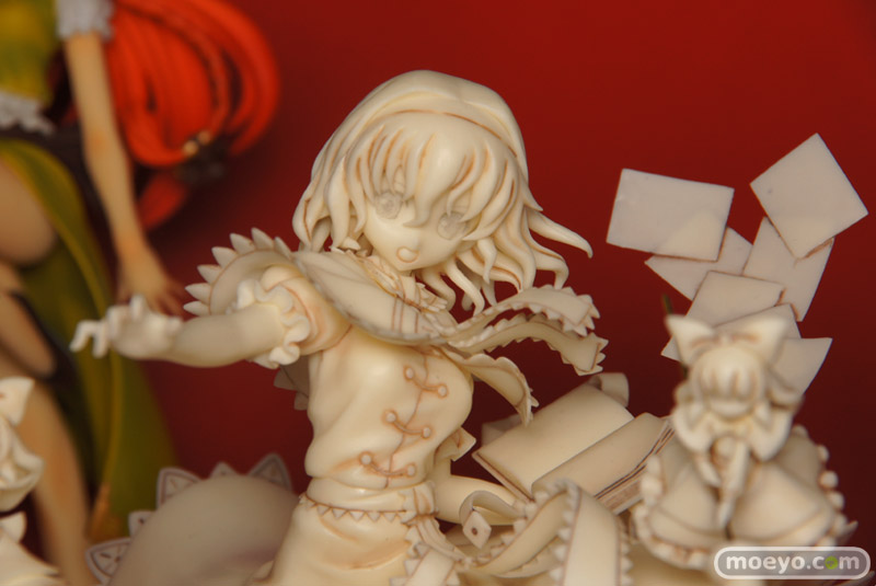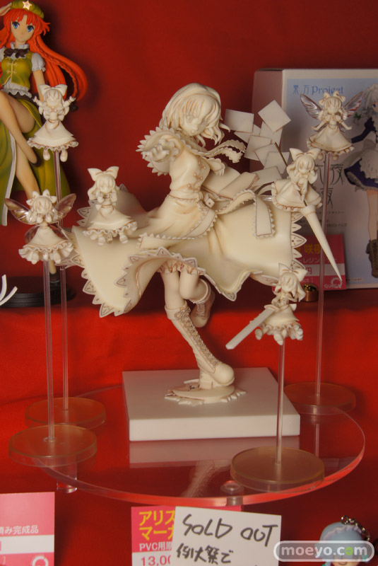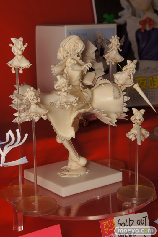 「トレジャーフェスタin有明5」のキューズQブースで、今秋にPVC完成品として発売予定の「東方プロジェクト アリス・マーガトロイド」の無彩色ガレキ版のサンプルが展示されていました。人形6体も付属しています。