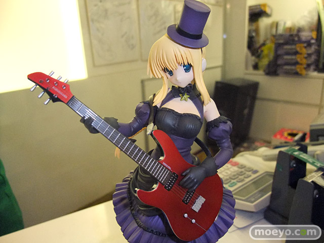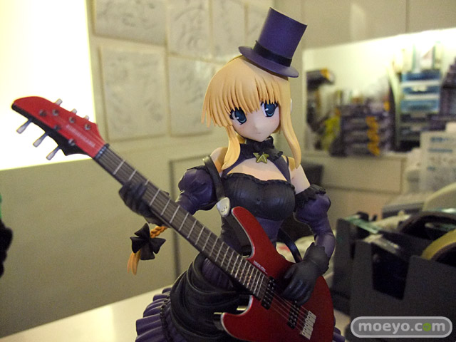 コトブキヤ「愛佳でいくの!! バード シルファ」のPVCサンプルが、KOTOBUKIYAで展示開始。イラストが存在しない細かい部分も、みつみ美里氏と打ち合わせをし、立体化したもので、ギターはCADデータから造り起こし。パンツは黒パン。