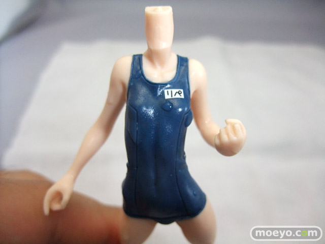 カラーレジンで塗装不要なので、初心者にも作りやすいガレキ「ダイすきット リペたん」を、もんぷち。が組み立てる過程を1日1枚の画像でお伝えしていきます!今日は「リペ」のネームデカールをスク水に。これでデカール貼りは全て終了。