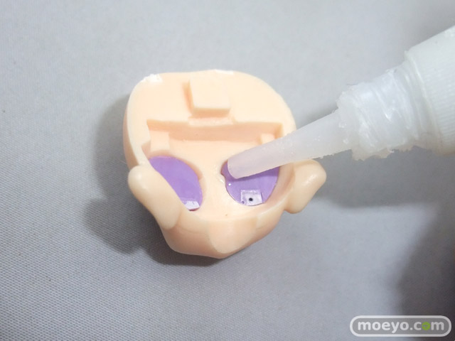 カラーレジンで塗装不要なので、初心者にも作りやすいガレキ「ダイすきット リペたん」を、もんぷち。が組み立てる過程を1日1枚の画像でお伝えしていきます!今日は顔パーツに目のパーツを接着。裏から瞬着を点つけする感じです。