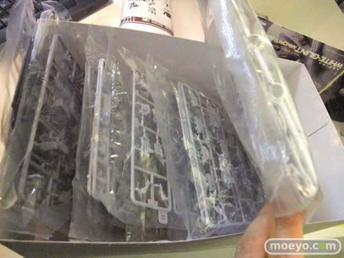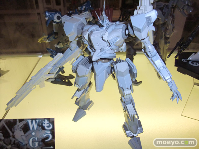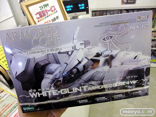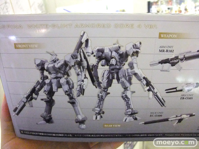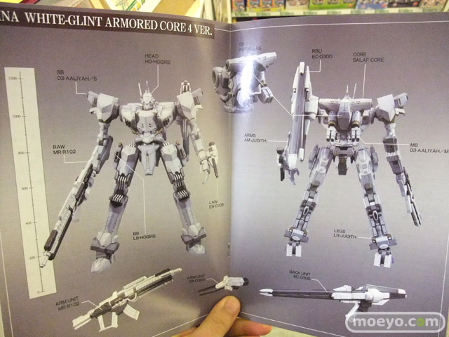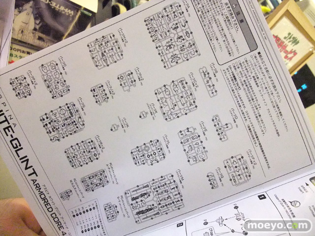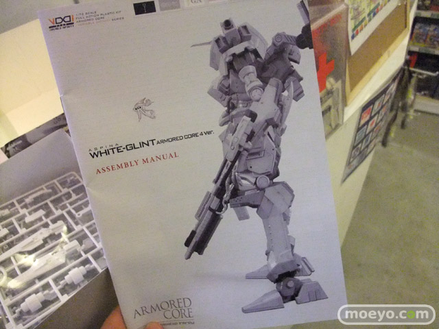 コトブキヤのAC4を象徴する機体、通称「ジョシュア・グリント」をプラキット化した「アーマード・コア アスピナ ホワイト・グリント ARMORED CORE 4 Ver.」のパッケージサンプルが、KOTOBUKIYAに到着。マニュアルなどを見せて頂きました。