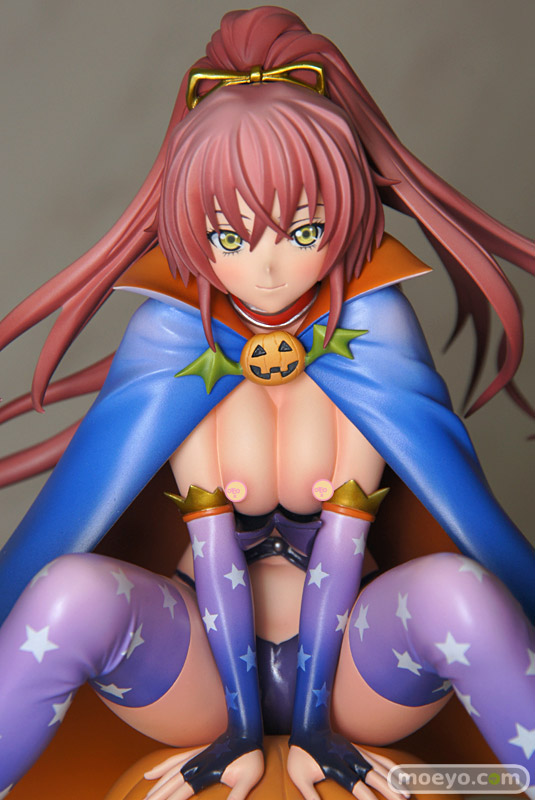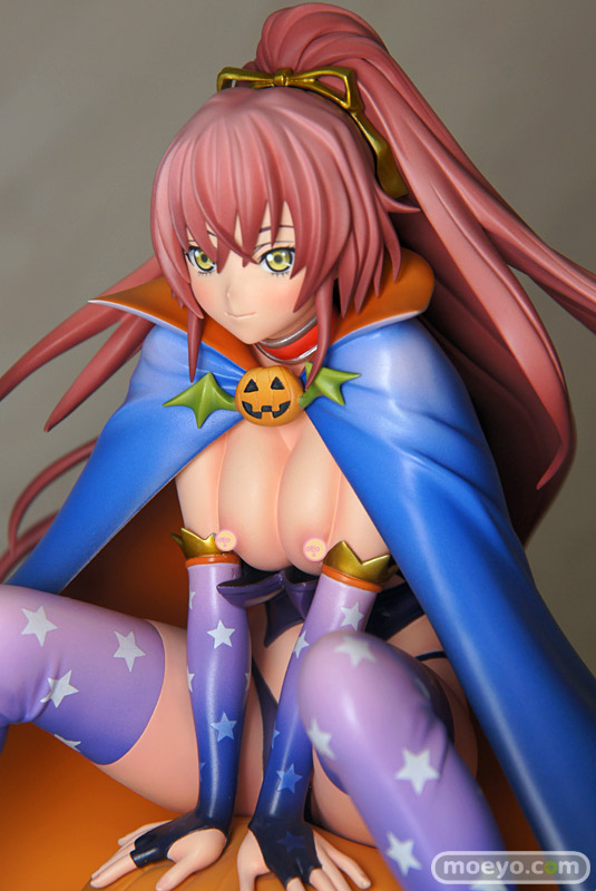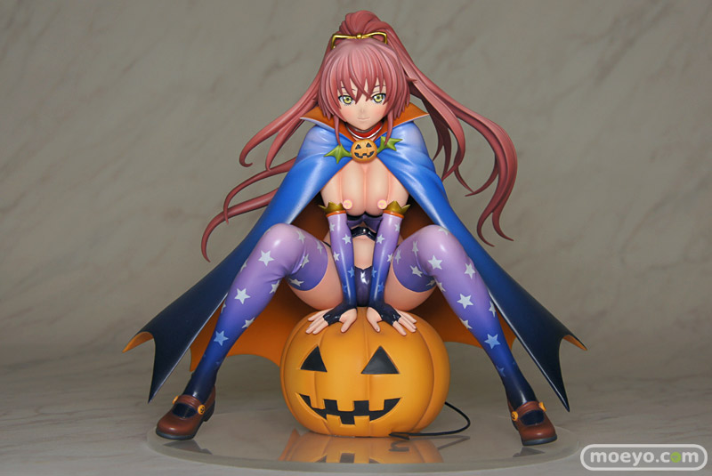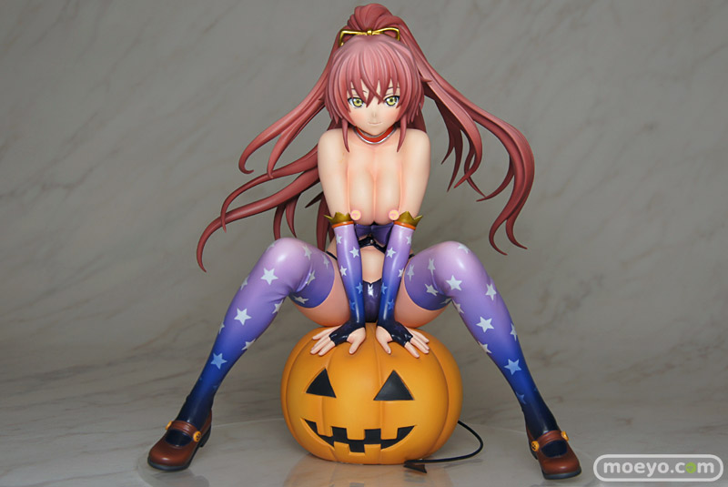 ハロウィンモチーフのおばけカボチャにまたがって悪戯な視線を投げかける表情や、腕の間で寄せ上げられる胸の谷間に、お菓子をあげずにはいられない?!