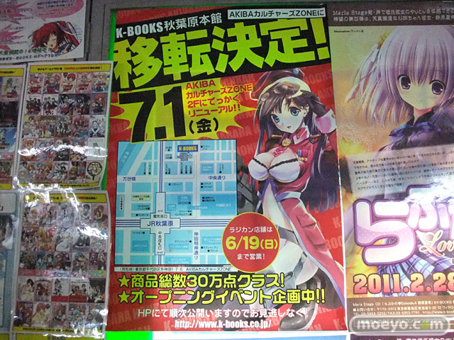 5月23日に、K-BOOKS店頭で、正式な移転告知が掲示されているのに気がつきました。それによると、旧ザコン館の新名称は「AKIBAカルチャーズZONE」となるみたいです。7月1日に移転オープン予定とのことです。