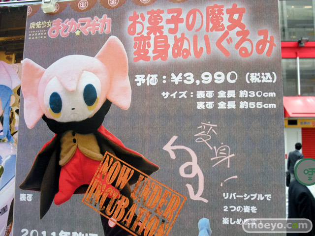 ムービック「魔法少女まどか☆マギカ お菓子の魔女変身ぬいぐるみ」の告知が、ゲーマーズ本店の店頭で掲示されていました。告知によると、ぬいぐるみはリバーシブルであの恵方巻にも出来るみたいです。恵方巻の再現度が高い・・・。