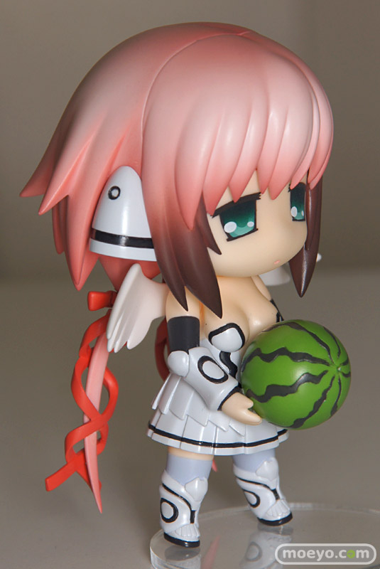 グッドスマイルカンパニー「ねんどろいど そらのおとしものf イカロス」のサンプルレビューです。普通の素立ちポーズはもちろん、オプションパーツでスイカを抱えておっとりなポーズや、”空の女王(ウラヌス・クイーン)”モードも再現可能。