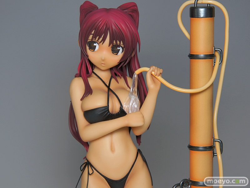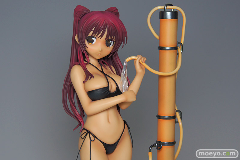 ToHeart2 PORTABLE特典イラストをもとに製作されたタマ姉水着イラストver.(サンプルレビュー)の黒ビキニver.は、こんがり日焼け肌。水着の下の白肌は、ホースの先の水流を取り外してご確認下さい! 砂浜イメージの専用ベースも、もちろん付属です。