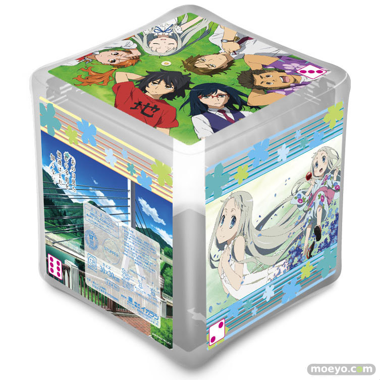 ■ 商品名:「『あの日見た花の名前を僕達はまだ知らない。』さいころビーチボール」 ■ 仕様: サイズ:30×30×30cm 材質:塩化ビニル樹脂(安全基準適合PVC) 中国製 ■ 価格:税込1,050円 ■ 予約締切:2011年6月26日 ■ 発送:2011年7月下旬 |