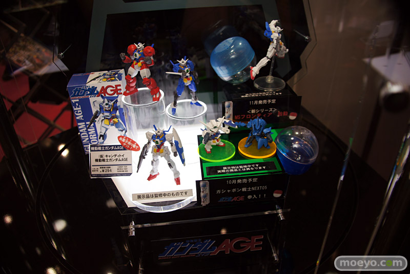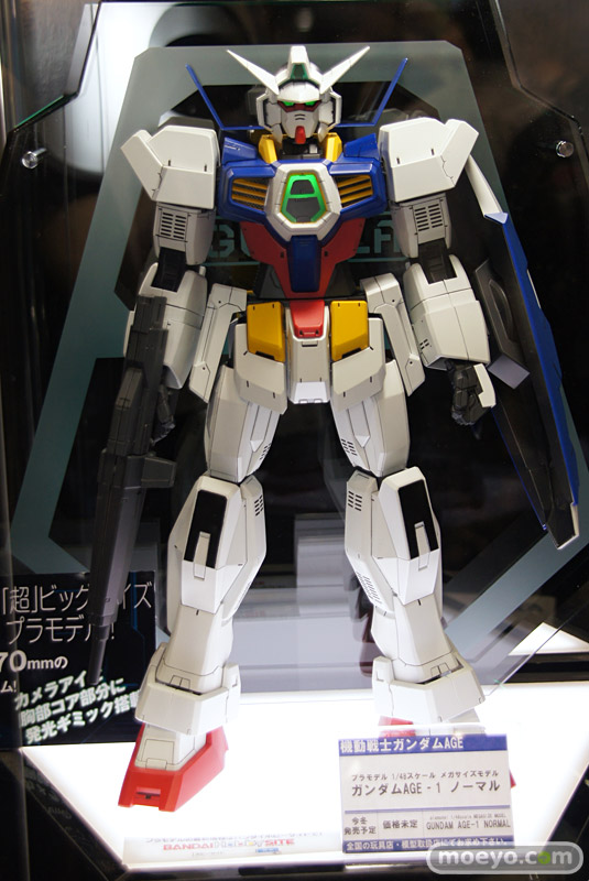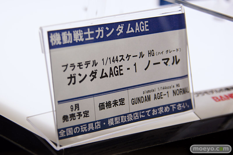 「東京おもちゃショー2011」のバンダイブースで展開されていた「機動戦士ガンダムAGE」系ホビーのうち「ゲイジング」関係以外のHGやメガサイズなどの、スタンダードなアイテムの展示をざっくりとまとめました。画像は「HG ガンダムAGE-1 ノーマル」