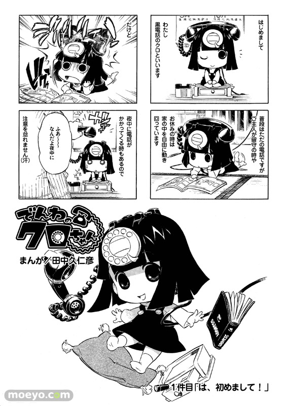 ホビージャパンのキャラクター情報サイト「とれたて!ほびーちゃんねる」にて好評連載中のコミック『でんわのクロちゃん』。田中久仁彦先生が描くノスタルジックファンタジー4コマとして連載中の本作と、人気キャラクターたちをリアルタイム3Dアクションフィギュアとして楽しめるPCソフト「きゃらコレ!」(販売:フォーゲスト)とのコラボ企画、「でんわのクロちゃん ミュージックプレイヤー」の無料配信がスタートしました。