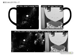 ■ 商品名:「夜空とめんまマグカップ」 ■ サイズ:高さ9cm×直径8cm/陶器製 ■ 価格:税込840円 ■ 発売:2011年8月上旬 |