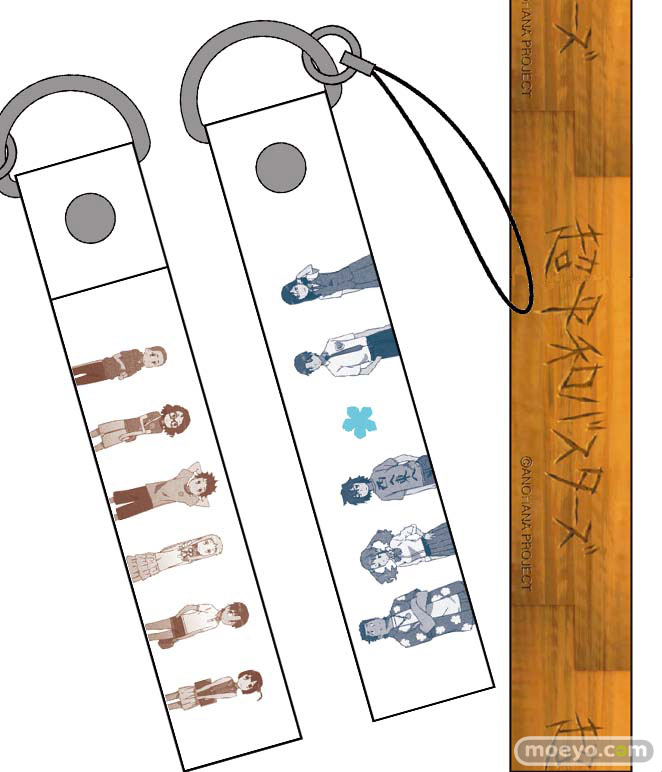 ■ 商品名:「めんまストラップ」「あなるストラップ」「あの花ストラップ」 ■ ベルト部分:約10cm / ポリエステル ■ 価格:税込840円 ■ 発売:2011年8月上旬 |
