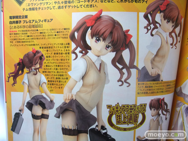 ■ 商品名:「フィギュアマニアックス 乙女組 Vol.43 2011年 08月号」 ■ 誌上通販: ・風見みずほ -水着Ver.3- ・風見みずほ -水着Ver.2-(再販) ・川嶋亜美 チャイナドレスVer. ・電撃限定企画 白井黒子プレミアムフィギュア ・暁美ほむら 電撃Ver. ■ 価格:税込1,680円 |