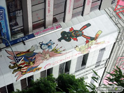 7月1日オープンの「AKIBAカルチャーズZONE」の壁面の工事が終わったようで、壁面に描かれた巨大なイメージキャラクター?のイラストが大きく描かれていました。他、2Fの窓には、ラジオ会館から移転オープン予定の「K-BOOKS」の文字も。
