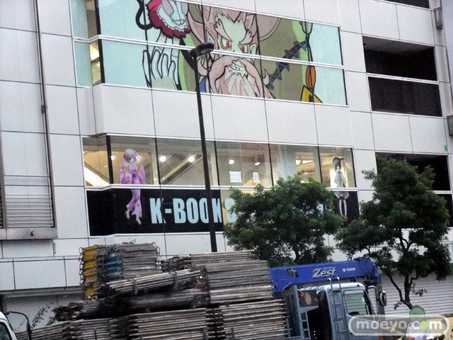 2F窓にはコトブキヤラジオ会館から移転オープンする「K-BBOK」の文字も。K-BOOKSは1~2Fで7月1日より営業開始予定