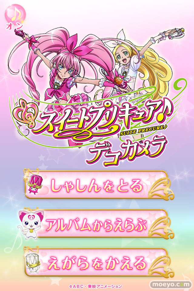 東映アニメーション株式会社と株式会社ホビーストックは共同で、大人気アニメ「スイートプリキュア♪」のiPhone用アプリケーションソフト「スイートプリキュア♪デコカメラ」を2011年6月13日(月)より配信開始いたしました。昨年ご好評いただいた「ハートキャッチプリキュア!デコカメラ」に続いて第二弾デコカメラアプリになります。