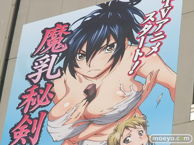 アニメ「魔乳秘剣帖」の巨大告知POPが、アキバで掲示開始