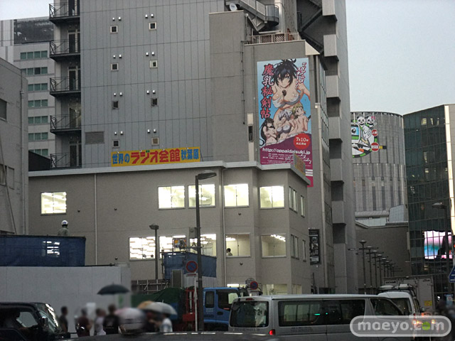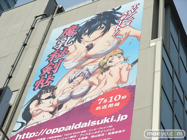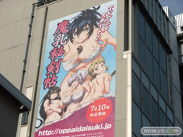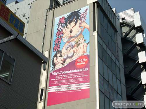 アニメ「魔乳秘剣帖」のおっぱい下着姿の巨大告知POPがアキバで掲示開始