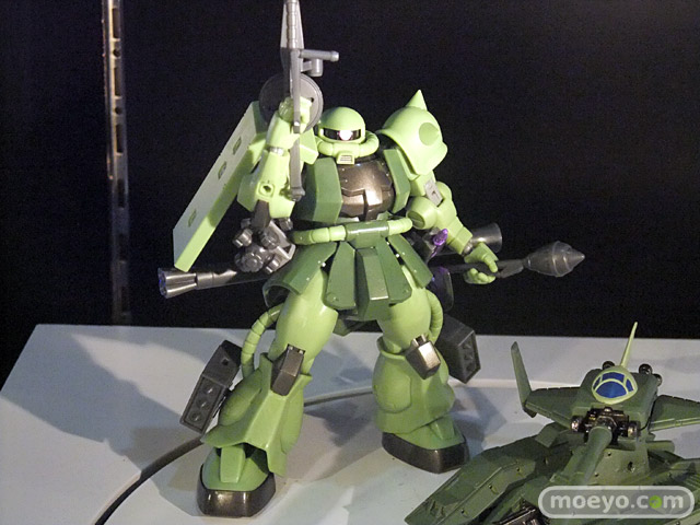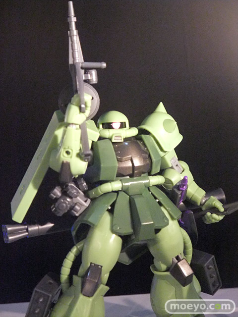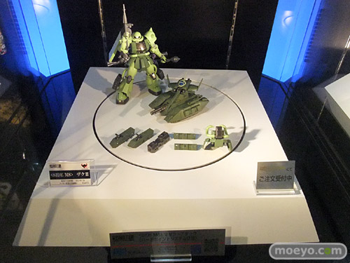 「魂ネイションズ AKIBAショールーム」にて、バンダイのROBOT魂「ザクII」と「マゼラ・アタック(ハードポイントシステム仕様)」のサンプルが展示中。ハードポイントが全部で16箇所に設置されたザクは、かなり重厚な質感となっていました。