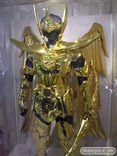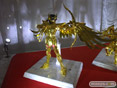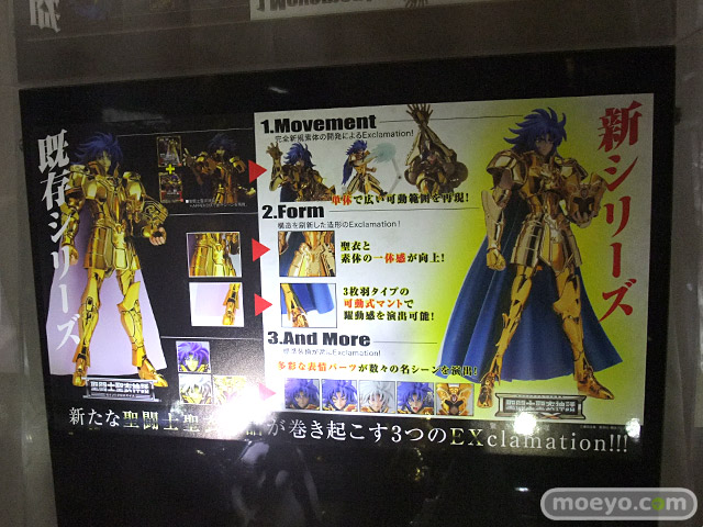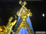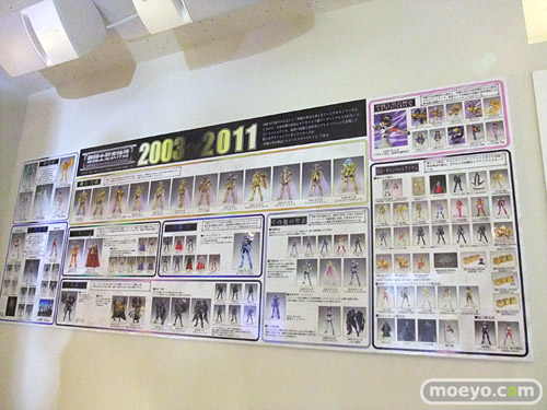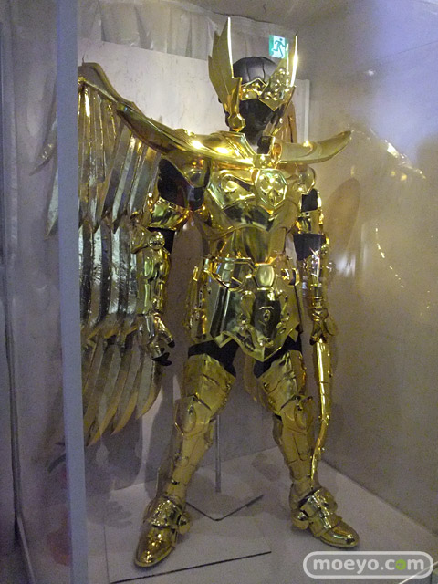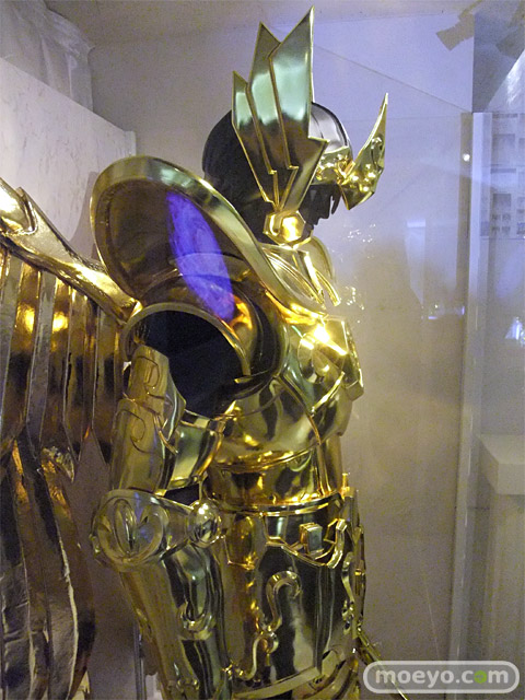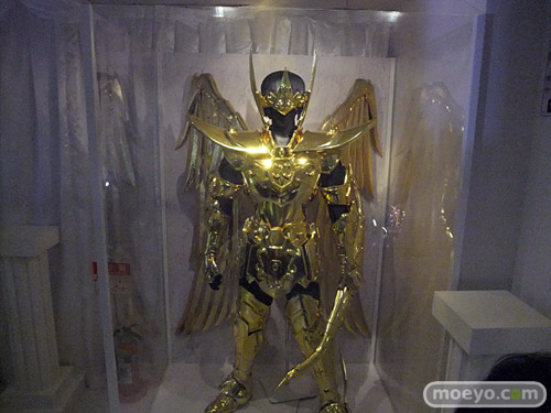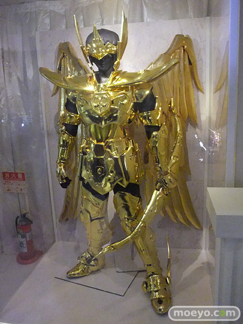 「魂ネイションズ AKIBAショールーム」のコンセプト展示エリアでは、聖闘士聖衣特集が行われていて、1/6スケールの新シリーズ「聖闘士聖衣皇級」を始めとした最新アイテムが並べられていました。また、等身大となった「サジタリアス」の姿も。