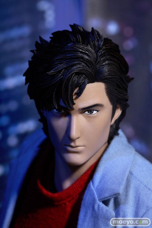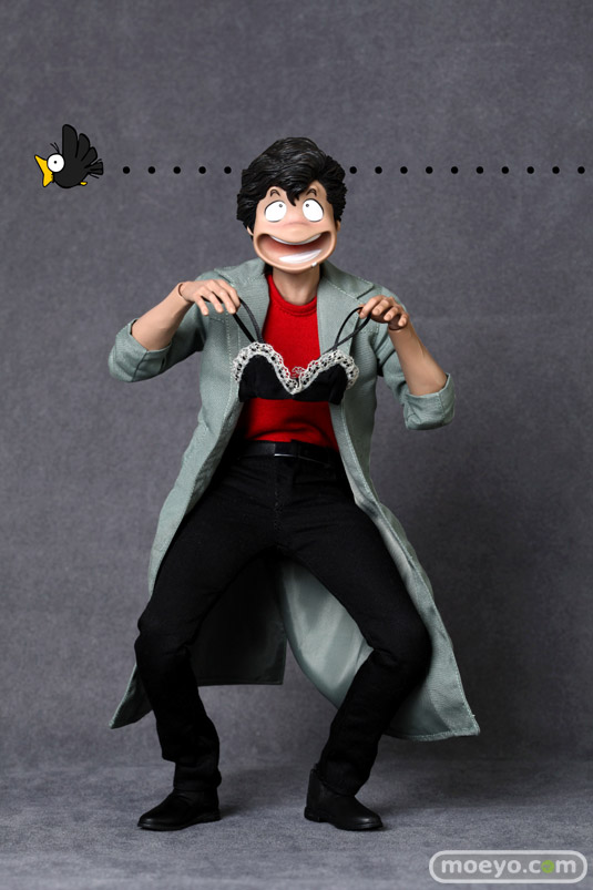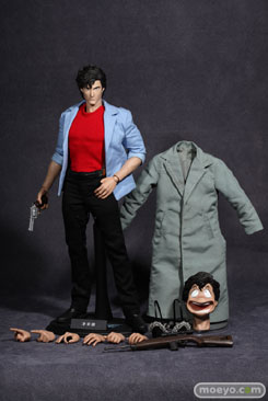 2つ目は、新宿のタネ馬、獠ちゃんを再現できるモッコリ顔のヘッドだ。獠の魅力的な表情を再現するために、一つひとつがハンドペイントで塗装が施されている。コスチュームは、シルエットまで忠実な仕上がりで、水色のジャケットと着せ替え用のロングコートが付属。