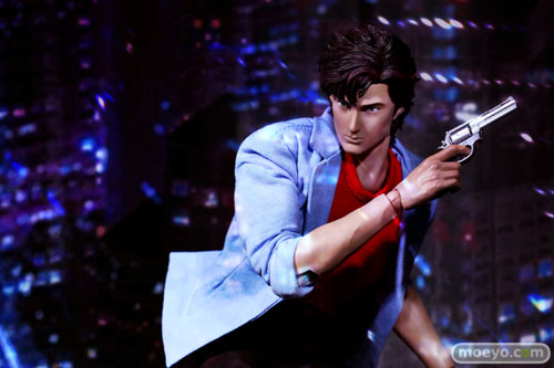 全高約30センチ、30箇所以上が可動するフィギュアは、強く優しい都会の戦士で遊び人という冴羽 獠の魅力を最大限に再現。ヘッドは2つ付属し、1つ目は、ワルを始末するスイーパーのクールな獠のヘッド。