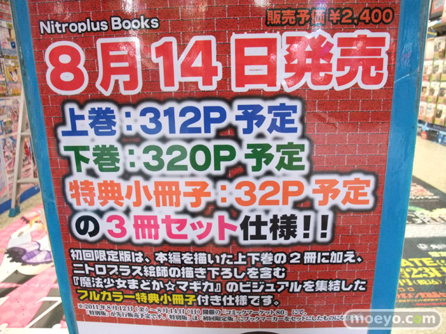 ※2011年8月12日(金)~8月14日(日)開催の「コミックマーケット80(ブースNo:437/ブース名:二トロプラス)」にて、初回限定版の3冊にキュゥべえの立体をヘッドにした特製の「キュゥべえメタルブックマーカー」をセットにした特別版(イベント価格3,000円)を先行販売いたします。こちらの特別版は、後日ニトロプラス公式通販でも取り扱いを予定しております。