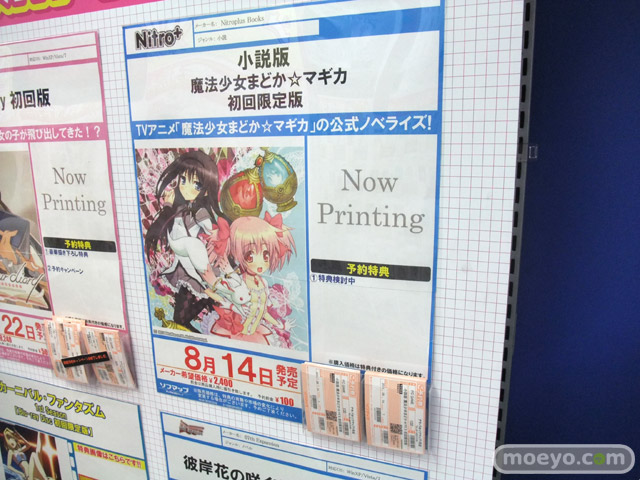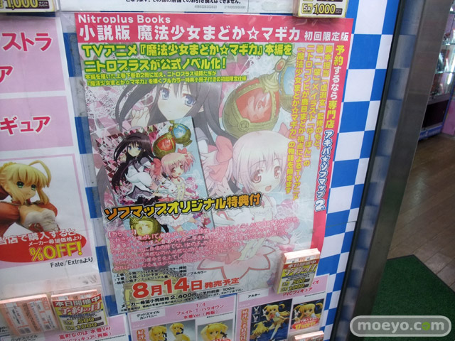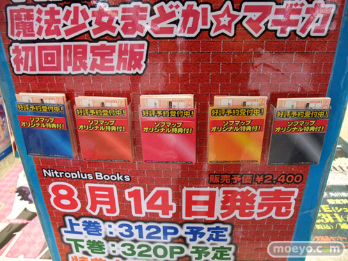 虚淵氏監修のもと、一肇氏×ゆーぽん氏のニトロプラススタッフコンビが執筆する「小説版 魔法少女まどか☆マギカ 初回限定版」の予約がアキバで開始。ソフマAM館の予約コーナーでは「また、この位置で会えたね。」なQBも。