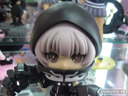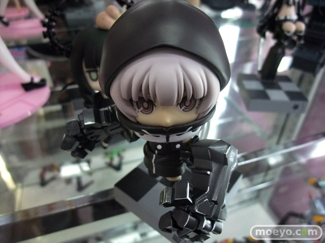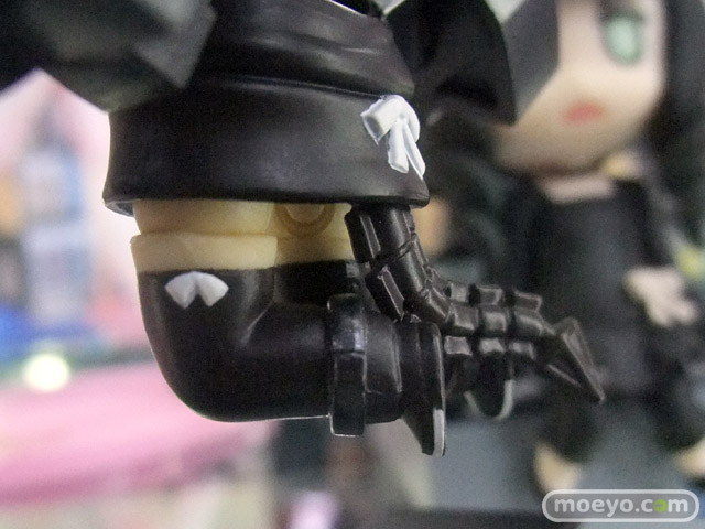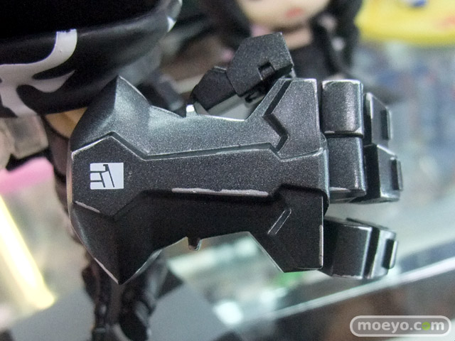 グッドスマイルカンパニー「ねんどろいど ブラック★ロックシューター ストレングス」のPVCサンプルが、アキバ☆ソフマップ2号店で展示中。上から覗くと隠れた口元が見えて、とってもラブリー。特徴的な腕の指関節は可動式となっています。