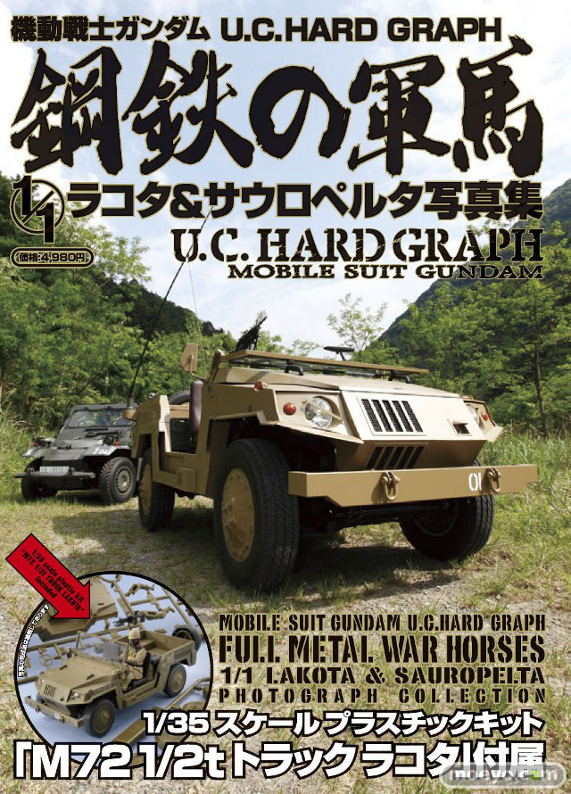 ■ 商品名:「機動戦士ガンダム U.C.HARD GRAPH 鋼鉄の軍馬 1/1ラコタ&サウロペルタ写真集」 ■ 発売元:ホビージャパン ■ 仕様:A4判・116ページ ■ 特別付録:1/35スケール「M72 1/2tトラック ラコタ」プラキット ■ 価格:税込4,980円 ■ 発売:2011年7月30日 |