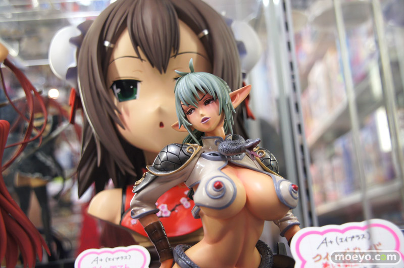 A+(エイプラス)「バカとテストと召喚獣にっ! 木下秀吉 1/1.5 ポリレジンスタチュー」と「クイーンズブレイド 歴戦の傭兵 エキドナ 1/4.5 ポリレジンフィギュア」のサンプルが、宇宙船で展示開始。秀吉は他と並んでると、ものすごいインパクトです。