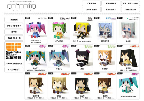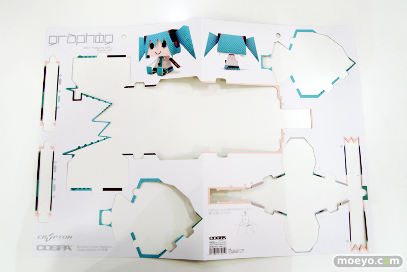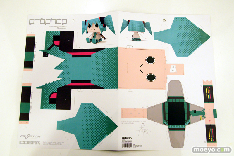 ■ 商品名:「グラフィグ001 初音ミク Nasos ver.」 ■ 発売元:コスパ ■ 仕様:ペーパークラフト ■ サイズ:組立前 515mm×363mm / 組立後 全高約130mm ■ 価格:税込630円 ■ 発売:2011年6月再販(発売中) |