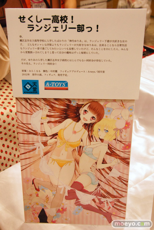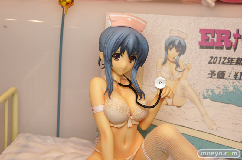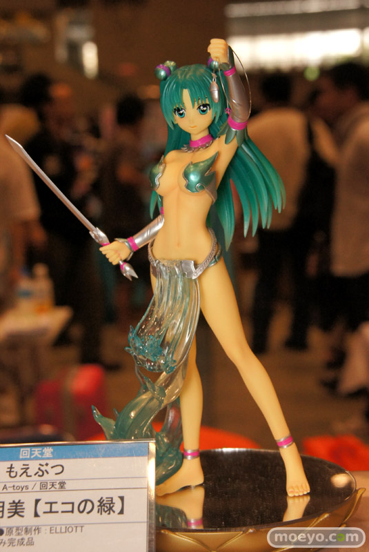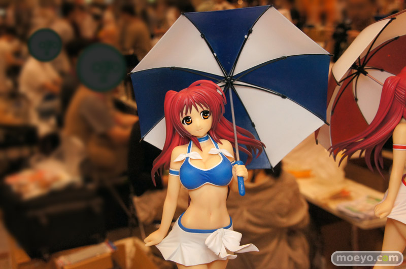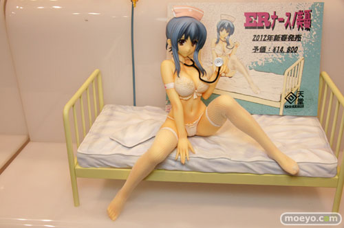 「ワンダーフェスティバル 2011[夏]」の回天堂ブースの新作フィギュア展示の様子を。画像は初公開の「1/6 ToHeart2 向坂環 サーキット・エンジェル」。他「ERナース 美憂」「黒猫 白ワンピ」等、初出しの新作を多数展示。もちろん「もえぶつ」も。