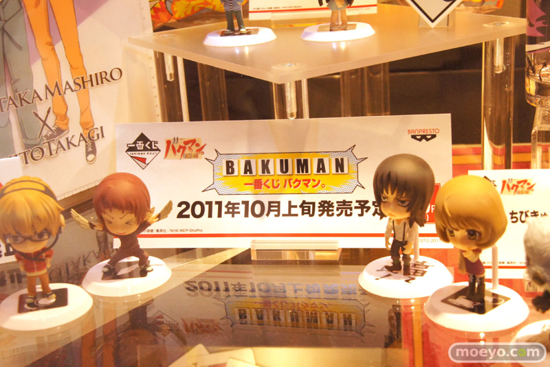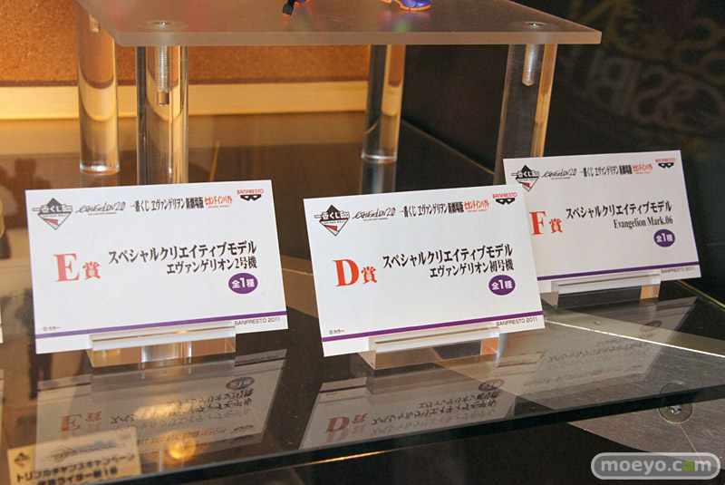 「ワンダーフェスティバル 2011[夏]」のバンプレストブースで展示されていた、「一番くじ」の新作展示の様子を。画像は「ヱヴァ新劇場版 セカンドインパクト」の特賞3種。他、「ジョジョ」「仮面ライダー」「ガンダム」「もやしもん」「バクマン」等など。