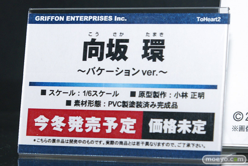 「ワンダーフェスティバル 2011[夏]」のグリフォンエンタープライズにあった新作を。画像は「ToHeart2 ダンジョントラベラーズ ファイター環」。他、タマ姉バケーションVer.や「DOGDAYS」「フィぎゅっと!」「東方」などの新作も。