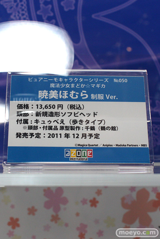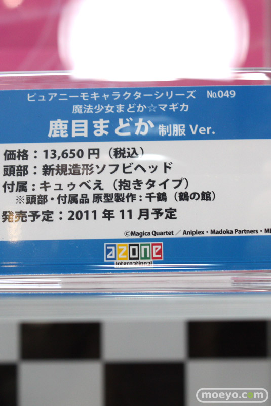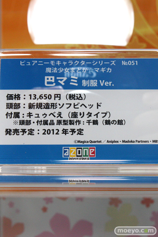 「ワンダーフェスティバル 2011[夏]」のアゾンブースの新作を。画像は「ピュアニーモ 巴マミ 制服 Ver.」。他「あなる」「めんま」や「五更瑠璃(黒猫本名)」「桐乃」、「百花繚乱 千姫」や東方シリーズやオリジナル等、多数の新作を展示。
