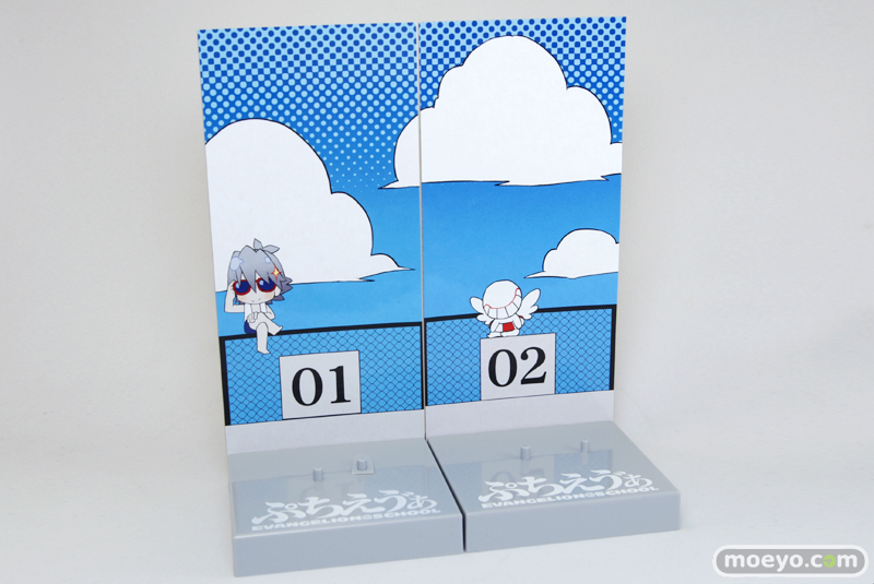新世紀エヴァンゲリオンの公式デフォルメ「ぷちえう゛ぁ EVANGELION@SCHOOL」。バンプレストプライズのぷちえう゛ぁシリーズ「COLLECTION 5」は、夏の青空の下 プラグスーツ型のスク水を着た レイとマリです。