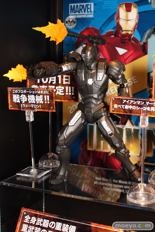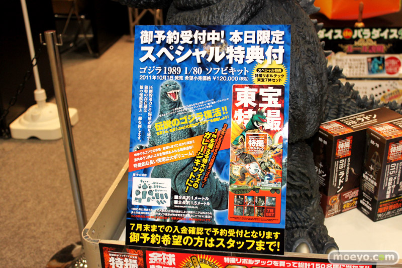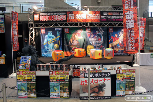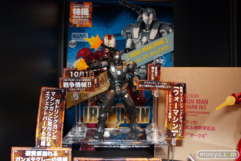 「ワンダーフェスティバル 2011[夏]」のケンエレファントブースでは、画像の「トランスフォーマー オプティマスプライム」や「アイアンマン2 ウォーマシン」を始め、特撮リボルテックの新作が多数展示。他、1mを超える特大サイズのゴジラのガレキも。