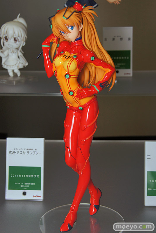 「2011夏 ホビーメーカー合同商品展示会」の会場で、マックスファクトリー「ヱヴァンゲリヲン新劇場版・破 式波・アスカ・ラングレー」のサンプルが展示。1/6スケールで再現されたテストプラグスーツ姿のアスカは、マリ同様素晴らしいクオリティ。