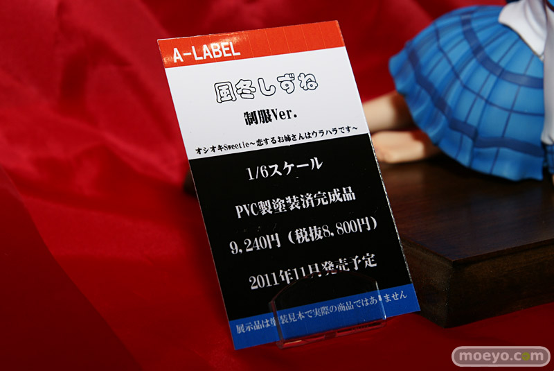 「ワンダーフェスティバル 2011[夏]」のA-LABELブースでは、超巨乳でキャストオフも可能な「オシオキSweetie ~恋するお姉さんはウラハラです~ 風冬しずね 制服Ver.」等の新作の彩色サンプルを展示していました。
