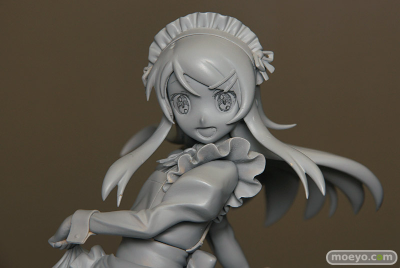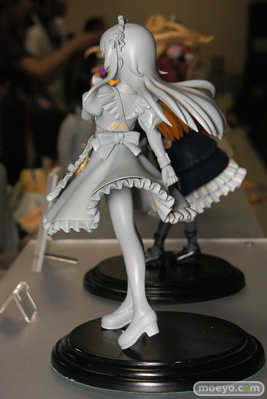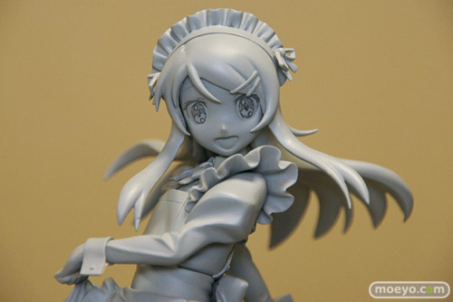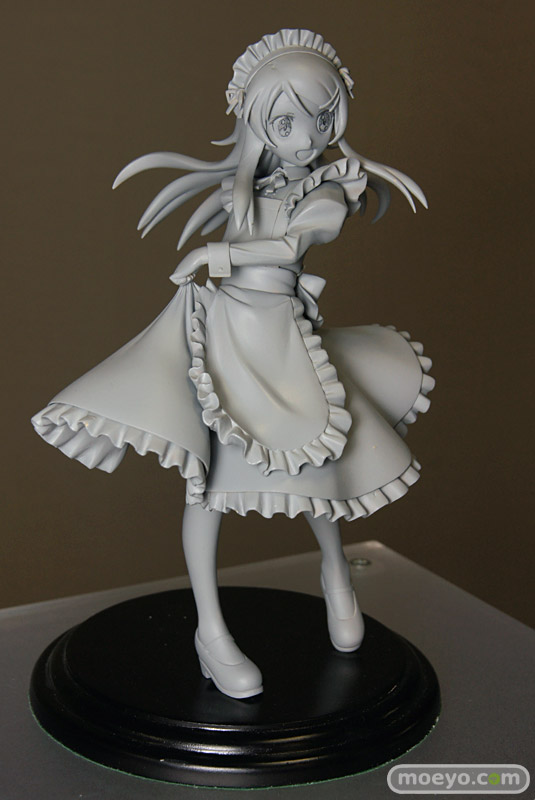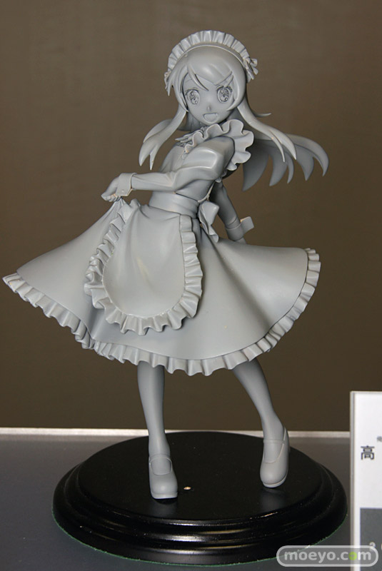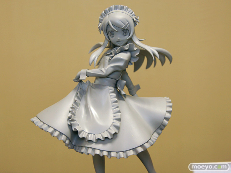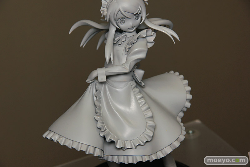 「2011夏 ホビーメーカー合同商品展示会」の会場で、FREEing「俺の妹がこんなに可愛いわけがない 高坂桐乃 メイド服Ver.」の無彩色サンプルが初公開。スカートを摘んだ優雅な立ち振る舞いが、とても素敵です。
