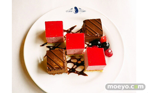 ちょっぴりビターなオペラと、甘いベリーのムースケーキを並べて、