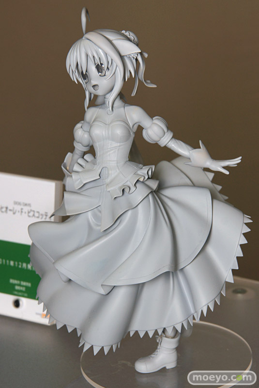 「2011夏 ホビーメーカー合同商品展示会」の会場で、グッドスマイルカンパニー「DOG DAYS ミルヒオーレ・F・ビスコッティ」の無彩色サンプルが展示。無彩色ながらも元気イッパイ愛され系のオーラは十分感じられ、特徴的な犬耳とシッポも可愛い。
