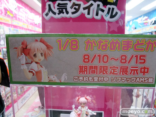 先日予約開始したばかりのグッドスマイルカンパニー「魔法少女まどかマギカ 鹿目まどか」のサンプルが、ソフマップアミューズメント館1F店頭の予約コーナーで展示開始。お盆期間中の8月15日まで展示されているようです。