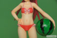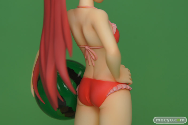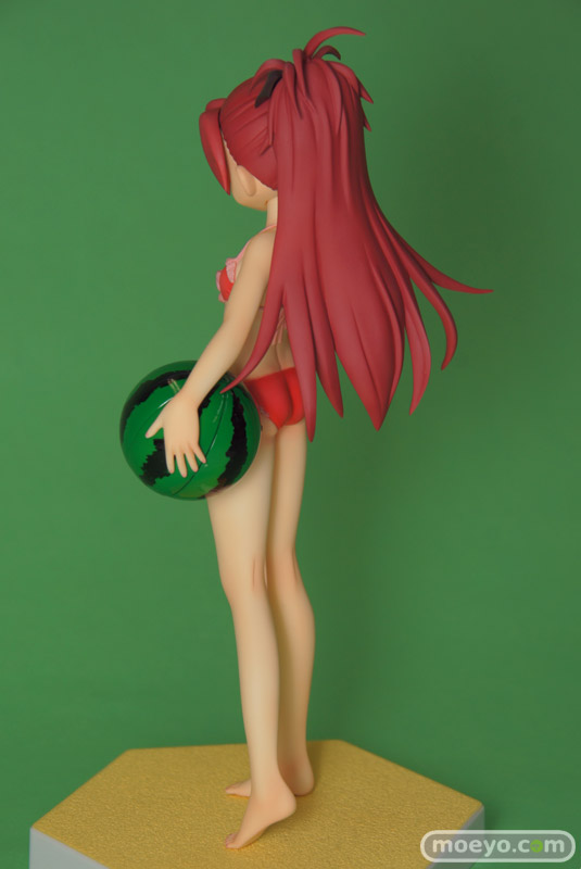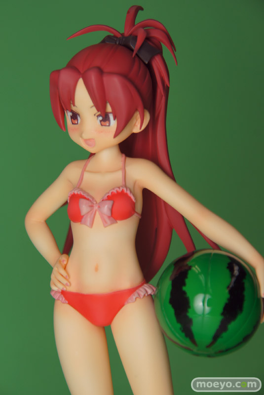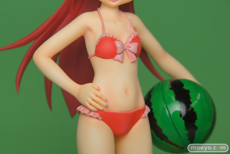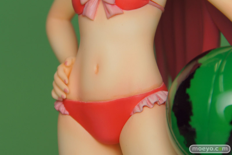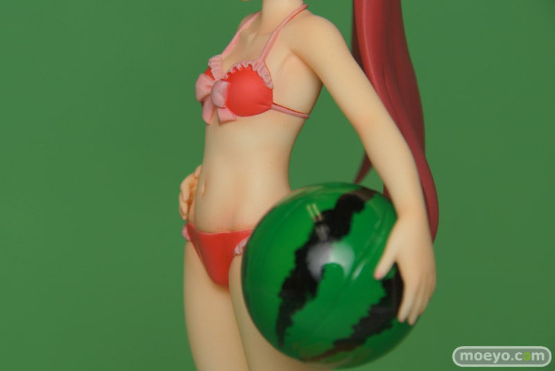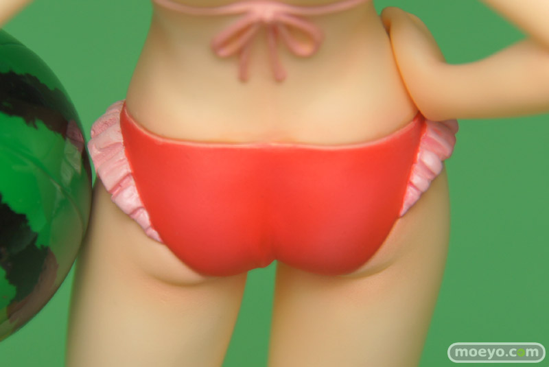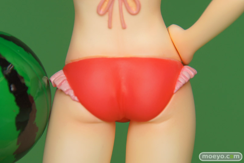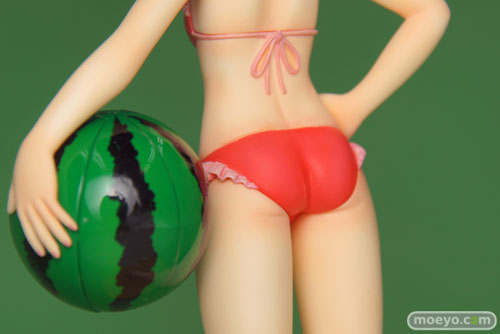 製品では、杏子らしい笑顔・仕草をイメージしたうえで再現すべく、原型師・大屋秀明氏がこだわって造型いたしました。左腕にはスイカ模様のビーチボールを持たせています。