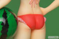 控えめなバストサイズながら、真っ赤なビキニが存在感を強くアピールします