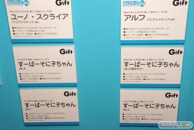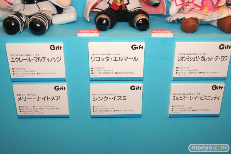 「ワンダーフェスティバル 2011[夏]」と、「2011夏 ホビーメーカー合同商品展示会」で展示されていた、Giftの「DOGDAYS」や「Aチャンネル」「化物語」等の、新作ぬいぐるみの展示の様子を合わせてお伝えします。