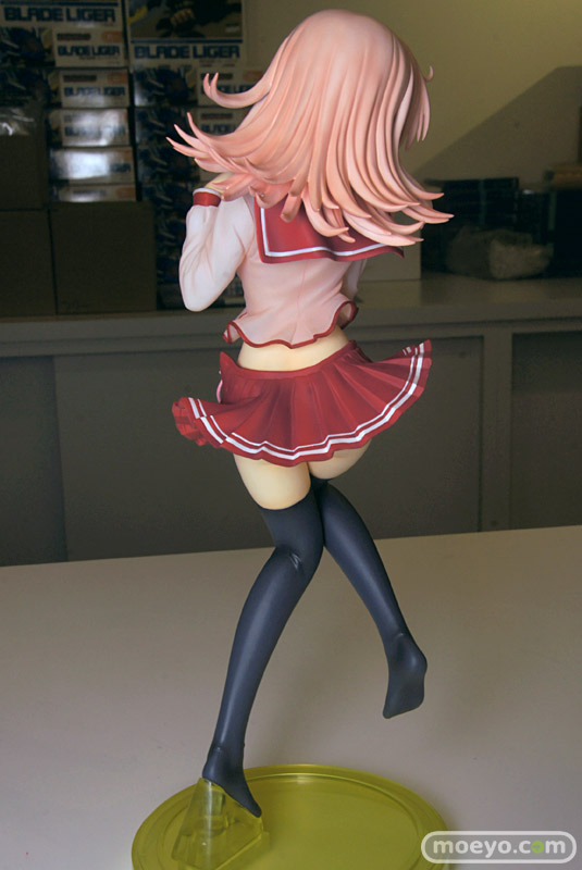そんな刺激的なポーズでありながら、ちょっぴり照れながら微笑む姿はなんとも可愛らしい仕上がりとなっております。 通常のスタンドベース他、クッションベースと脚の差し替えパーツも付属。元イラストの「寝転び姿」を再現することも可能です。