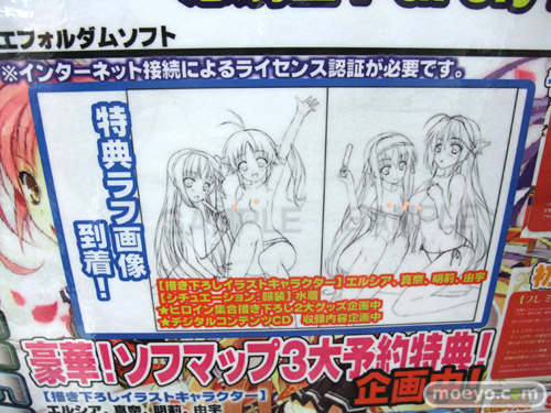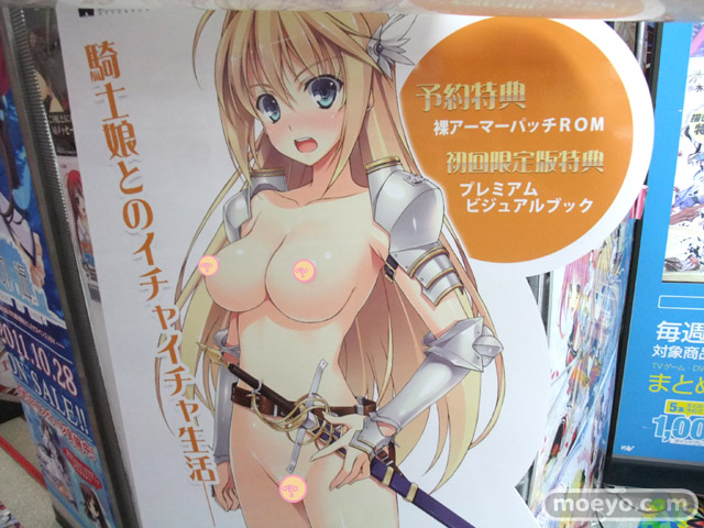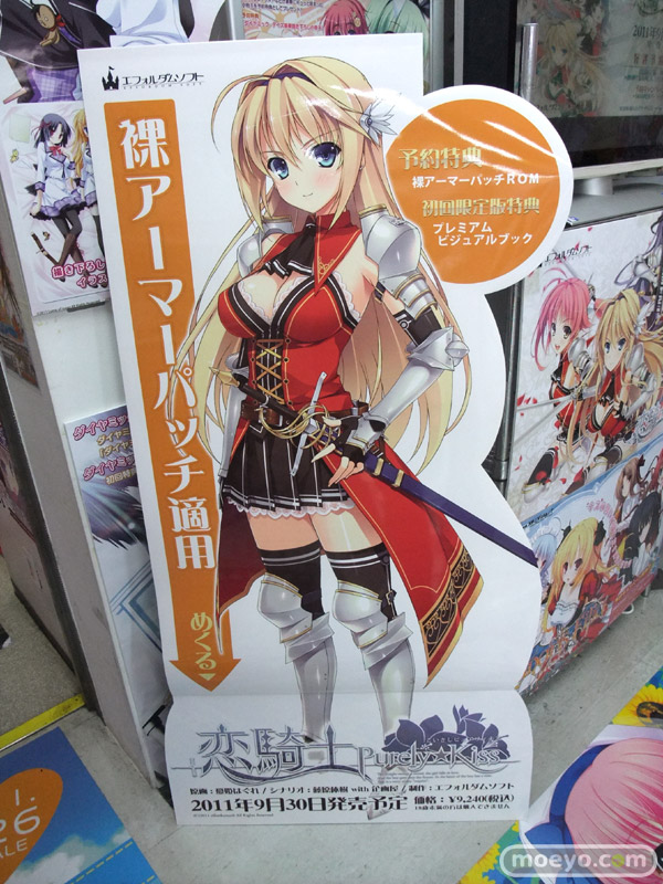 エフォルダムソフトの美少女ゲーム「恋騎士 Purely☆Kiss」には、予約特典で「裸アーマーパッチ」が付属します。その「裸アーマーパッチ」をとてもわかりやすく示したPOPが、ソフマップアミューズメント館5Fで展示されていました。