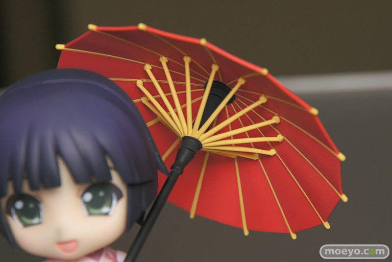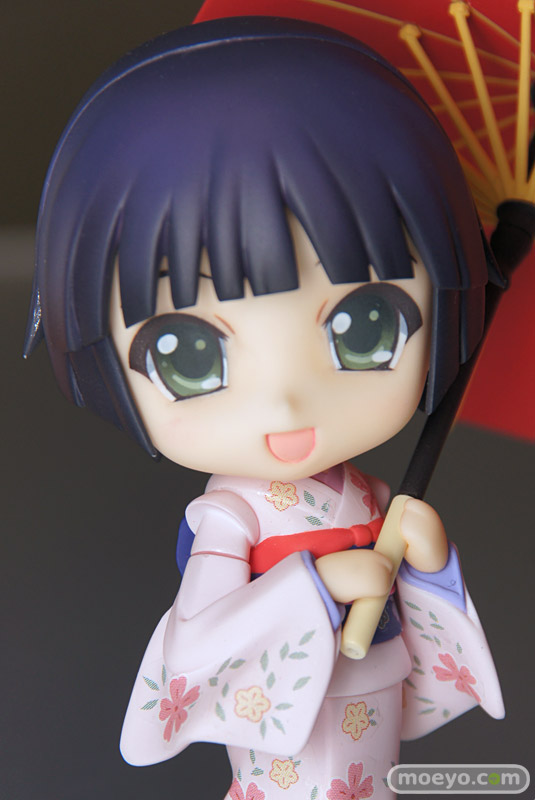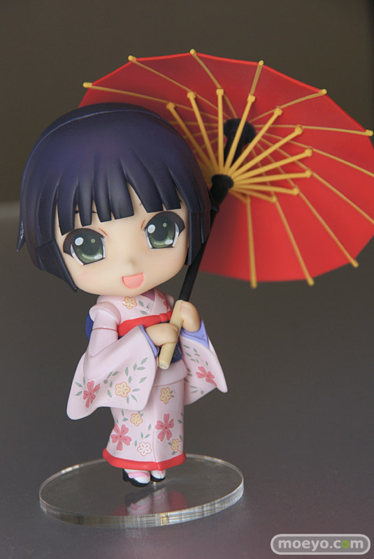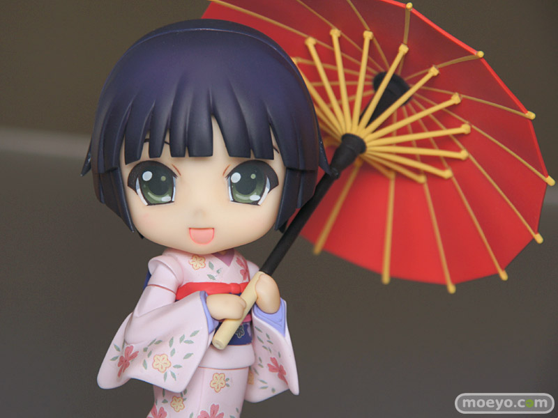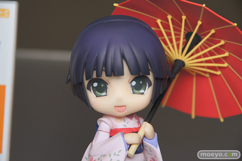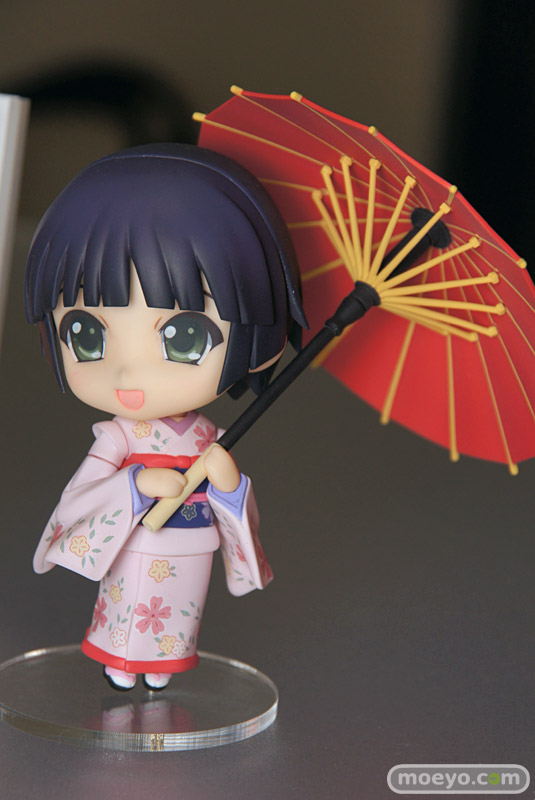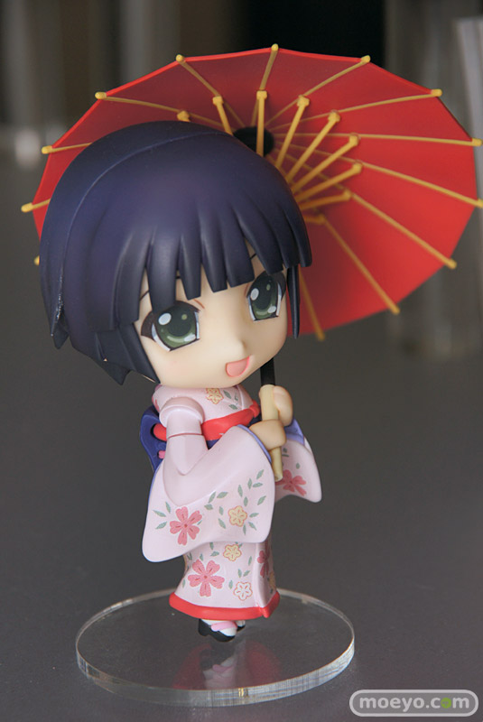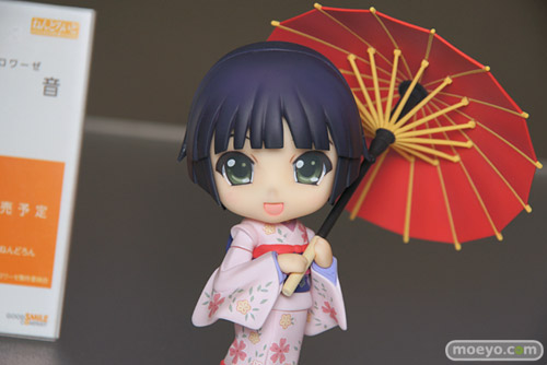 「2011夏 ホビーメーカー合同商品展示会」の会場で、GSC「ねんどろいど 異国迷路のクロワーゼ 湯音」の彩色サンプルが展示。『トレードマークの着物姿をかわい~く表現』というもので、三つ指をついてのお辞儀も再現可能。