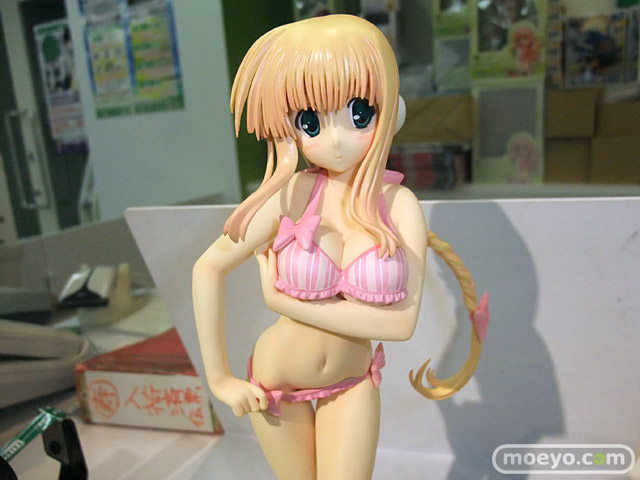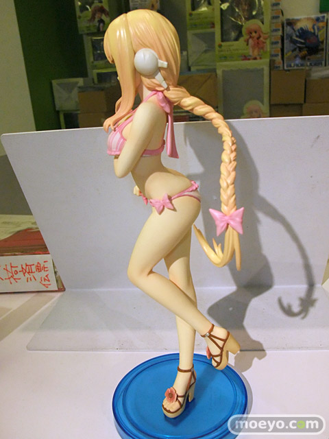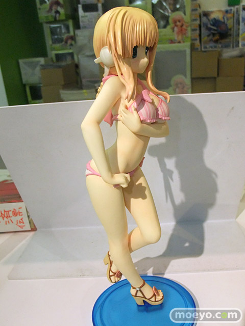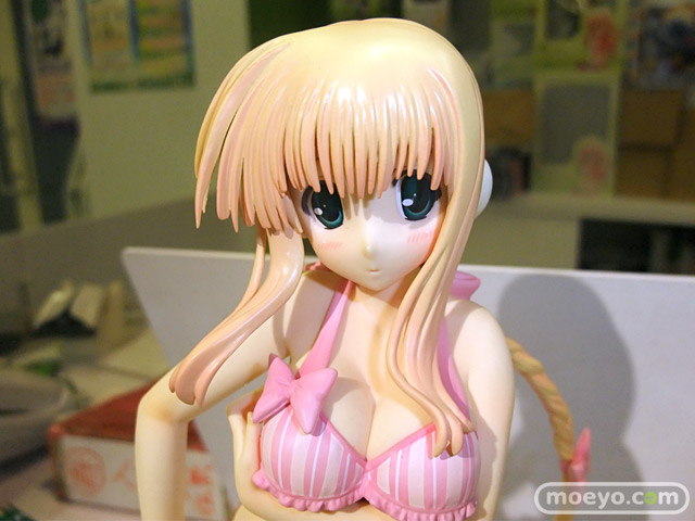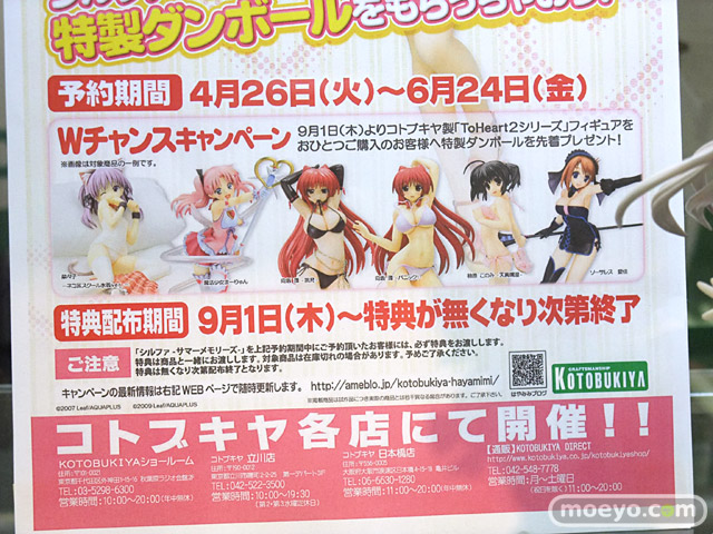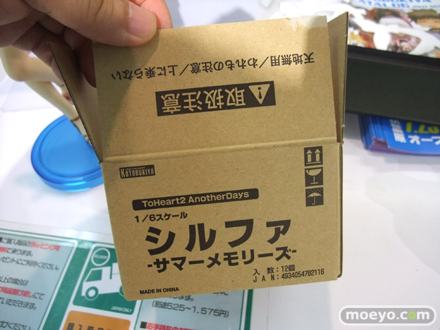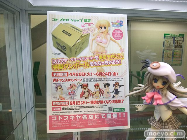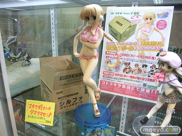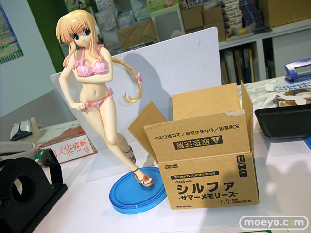 コトブキヤ「4-Leaves ToHeart2 AnotherDays シルファ -サマーメモリーズ-」のPVCサンプルが、コトブキヤ秋葉原館で展示中。4-Leavesならではのフェチズム満開なポーズで、色々な所がこぼれそう。コトブキヤ特典のダンボールも展示。